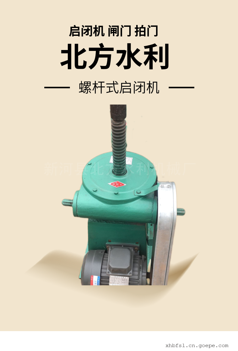 类型:螺杆式启闭机 品牌:北方水利 型号:QLQLSD QLS QDA PGZ PZ CBZ 功率:0.55-7.5KW 材质:铸铁 启闭力:0.5-30T 产品重量:实物为准 kg 加工定制:是 北方水利 手电两用双吊启闭机